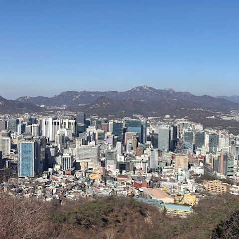 서울 타워가 보이는 멋진 전망입니다.