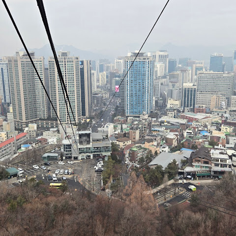 남산오르미를 이용해 정류장에서 케이블카로 갈아타는 순간부터, 단순한 이동이 아닌 하나의 여행 코스에 들어선 기분이 들었습니다. 케이블카 문이 닫히고 서서히 움직이기 시작하자, 발아래로 펼쳐지는 겨울 남산의 풍경이 자연스럽게 시선을 사로잡았습니다.