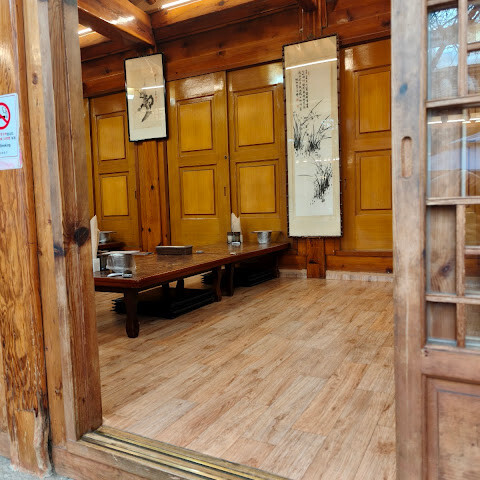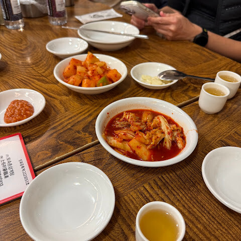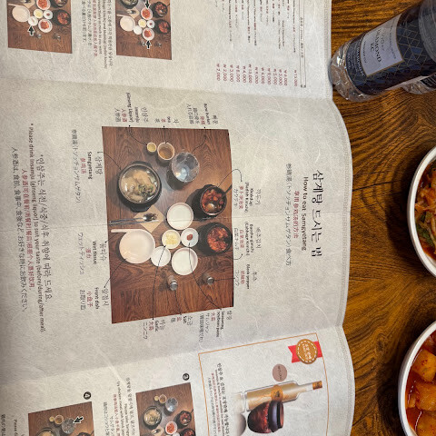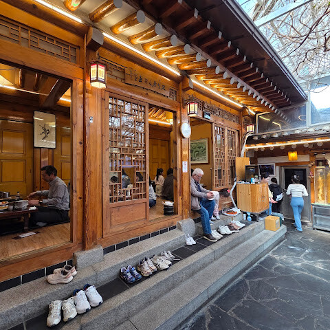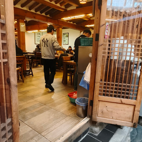 궁궐 방문 후 관광객들이 많이 찾는 곳입니다. 이 식당은 주로 인삼닭탕과 해물파전 같은 반찬을 제공합니다. 이곳의 대표 메뉴인 인삼과 대추가 들어간 찹쌀 삼계탕은 맛이 밍밍했습니다. 서울의 다른 삼계탕집과 별반 다를 게 없었습니다. 식당 분위기와 인테리어는 전통적인 한나라풍이었습니다. 서비스는 그저 그랬습니다. 처음 들어갔을 때 접수원은 우리를 자리에 앉히고 싶어 하지 않았습니다. 옆집 다른 삼계탕집(같은 주인이지만 전통적인 한나라풍 인테리어는 아닌 곳)을 추천했습니다. 우리가 꼭 여기서 먹겠다고 고집하자 그제야 들어갈 수 있었습니다. 처음 들어갔을 때는 손님도 많지 않았습니다. 이 식당은 모든 손님이 메인 요리를 하나씩 주문해야 한다는 규칙이 있어서, 우리 5명은 결국 국 4개와 파전 1개를 주문했습니다. 재사용 가능한 메뉴판은 기름때와 얼룩으로 범벅이 되어 있어서 만지기도 싫었습니다.