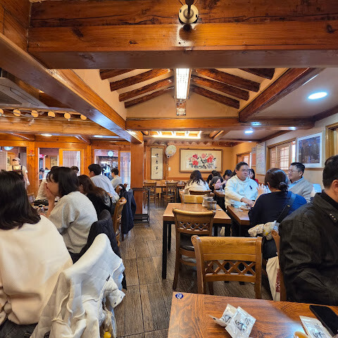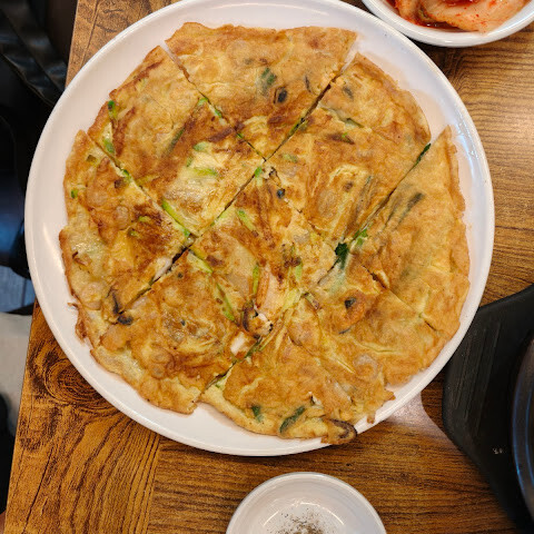 파전은 정말 맛있었어요. 삼계탕도 꽤 괜찮았고요. 토요일 점심시간에 갔는데 식당이 워낙 크고 직원들이 워낙 효율적이어서 줄을 거의 서지 않아도 됐어요. 음식도 거의 바로 나왔고요. 타이밍이 정말 좋았어요.