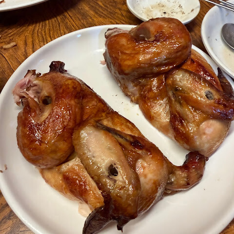 정말 훌륭했어요. 흰살 치킨이랑 검은살 치킨 둘 다 먹어봤는데, 국물이 정말 끝내줬어요. 로스트 치킨도 맛있어 보였지만 주문하진 않았어요. 가격 대비 정말 최고예요. 줄이 길어 보였는데 15분 만에 다 줄었어요. 기다릴 만한 가치가 충분해요.
