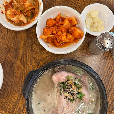 남편과 함께 유명한 삼계탕을 먹으러 왔어요. 전체적으로 맛이 훌륭했고, 특히 인삼 향이 진하게 느껴졌어요. 여러 곳에서 삼계탕을 먹어봤지만, 어떤 곳은 인삼 향이 이렇게 강하지 않았거든요. 겨울에 먹기 딱 좋은 곳이에요. 한국의 여름은 매우 덥고 탈수 증상이 심하기 때문에, 현지인들은 여름에도 체력 보충을 위해 삼계탕을 즐겨 먹는다고 해요.