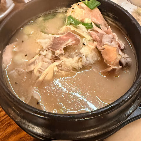 제 입맛에는 고기와 밥이 잘 섞여서 국물이 크리미해지는 게 제일 맛있는데, 여기 삼계탕은 뜨겁게 나오지 않아서 아쉬웠습니다. 왜 이렇게 평점이 높은지 의아했어요. 일행 모두 실망했고, 많은 추천을 받고 간 곳이라 기대가 컸는데 과대평가된 것 같다고 생각했습니다.