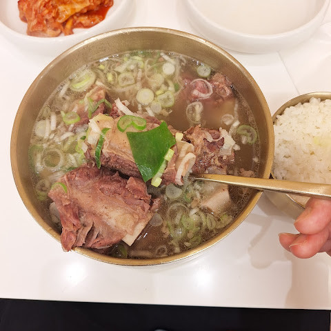 "갈비탕"(소갈비수프)은 단 하나의 메뉴만 제공합니다. 식당에 들어가면 2분만 서빙합니다. 가격은 적당하고 갈비는 충분하지만 반찬은 김치뿐입니다. 한국을 처음 방문하는 사람에게는 추천하지 않습니다.