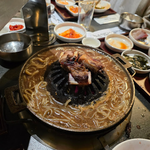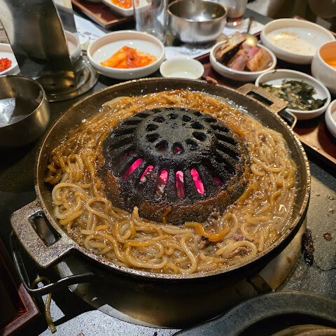 양념갈비, 불고기, 감자국수를 먹어봤는데, 모두 훌륭하고 아주 부드럽고 맛있었습니다. 반찬도 모두 훌륭했고 서비스도 아주 좋았습니다!