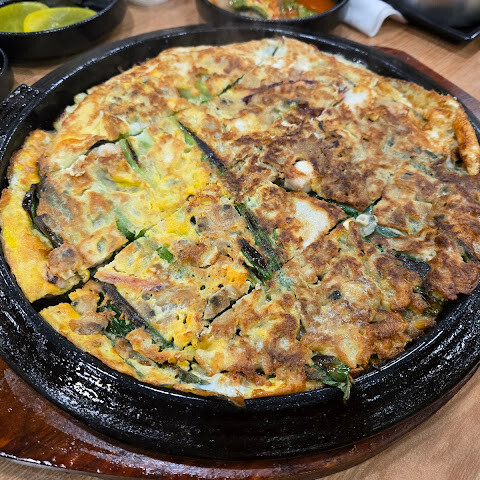 하지만 제가 가장 맛있게 먹은 음식은 메밀 해물파전이었습니다. 메밀은 글루텐이 없어서 반죽이 바삭하지 않고, 마치 맛있는 해물 키슈처럼 부드럽고 커스터드 같았습니다.