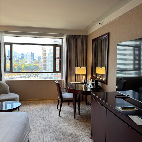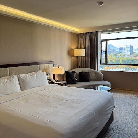 웨스틴 조선 서울은 역사, 우아함, 편안함이 조화를 이루는 데다 시청과 명동 인근의 최적의 입지를 자랑하며 4성급이라는 높은 평가를 받고 있습니다. 프리미엄룸은 환구단과 서울 스카이라인의 탁 트인 전망을 자랑하며, 고급 침구, 세련된 업무 공간, 네스프레소 머신과 디지털 온도 조절 장치 등 세심한 배려를 느낄 수 있도록 설계되었습니다. 넓고 흠잡을 데 없이 깨끗하지만, 메리어트의 플래그십 5성급 호텔답게 다소 구식 느낌이 들며, 현대적인 럭셔리보다는 절제된 비즈니스 클래식에 더 가깝습니다.