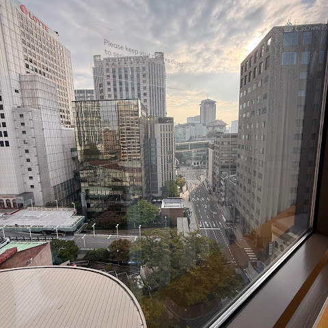 아주 좋고 넓고 큰 호텔입니다. 객실은 넓지만 그다지 편안하지는 않습니다. 서비스는 그다지 좋지 않습니다. 조식 뷔페는 매우 풍성하고 맛있습니다. 지하철역에서 반 블록 떨어져 있고 롯데백화점 바로 옆에 있어 위치가 매우 좋습니다.