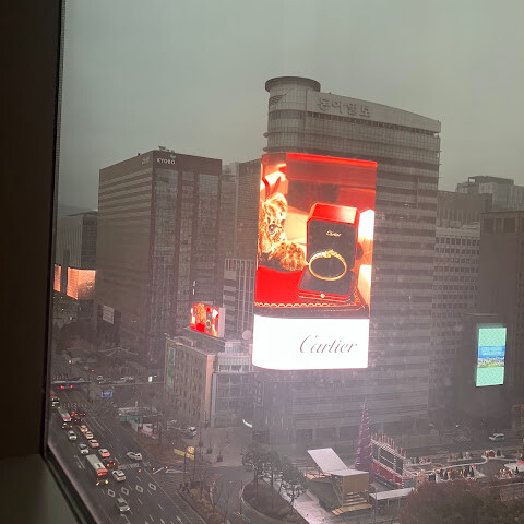 프리미어 킹룸에 묵었습니다. 객실은 넓고 매우 깨끗했습니다. 캡슐 커피 머신은 없어져서 아쉬웠습니다. 욕실은 사용하기 편리하고 세심하게 관리되어 있었습니다. TV는 객실 크기에 비해 약간 작았습니다. 냉난방 시설과 냉장고는 아주 잘 작동했습니다. 저는 이 호텔을 잘 알고 있습니다. 스탠다드룸은 오래되었지만, 디럭스룸은 그럭저럭 괜찮은 수준이었습니다. 객실 유형별로 스탠다드에 큰 차이가 있다는 점에 유의하세요. 전망은 두 가지 유형이 있습니다. 세종로 전망(두 유리판 사이에 에어락이 있어 방음이 잘 되지만, 시위가 있을 때는 예외)과 시티뷰 전망(조용하지만 시끌벅적한 분위기는 없음)입니다.