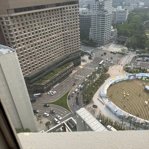 아고다에서 16층 디럭스 더블룸에 1박에 66파운드에 묵었습니다. 시청과 야외 아이스링크의 아름다운 전망이 펼쳐졌습니다. 6701번 공항 버스 정류장 바로 앞, 지하철 1호선과 2호선으로 연결되는 지하 쇼핑몰과 통로 바로 앞에 있어 위치가 편리했습니다.