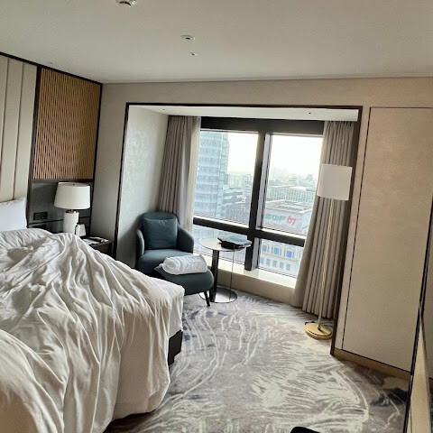 객실은 모던하고 넓으며 관리가 잘 되어 있습니다. 모든 것이 깨끗하고 고급스러운 느낌을 주며, 바닥에서 천장까지 이어지는 통유리창은 특별한 경험을 선사합니다.