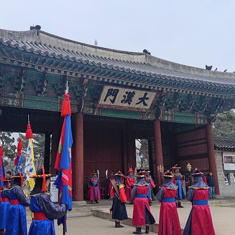 덕수궁 수문장 교대식은 서울에서 가장 관광객에게 친숙한 전통 의식 중 하나로, 조선시대 궁궐에서 행해지던 수문장 교대식을 재현한 것입니다. 덕수궁 정문 앞에서 오전 11시, 오후 2시에 열립니다. 오후 3시 30분 매일. 전체 과정은 약 15분이 소요되며 무료로 시청할 수 있습니다. 경비병들은 화려한 전통 의상을 입고 창, 북, 깃발을 들고 있었습니다. 엄숙하고 극적인 분위기가 감돌아 많은 관광객이 사진을 찍고 입장했습니다. 의식이 끝난 후에는 경비원과 가까이서 사진을 찍을 수 있는데, 이는 한국 궁중 문화를 이해하는 좋은 경험입니다.