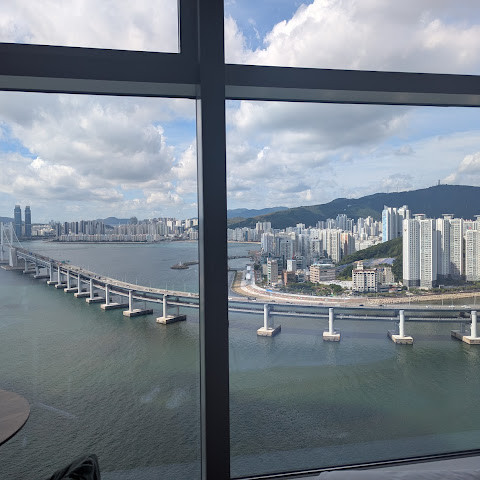 저는 최근 PH 부산에서 2박에 43,000포인트를 사용했습니다. 패밀리 오션 스위트(퀸 1개 + 트윈 1개)를 확보하기 위해 SUA를 사용했습니다. 현금 가격은 1666달러였습니다. 다리의 전망은 환상적이었지만, 태양 때문에 오후에는 엄청나게 더워졌습니다. 객실 온도는 75도로 제한되었고, 낮 동안 암막 커튼을 쳤더라도 매일 오후 식는 데 매우 오랜 시간이 걸렸습니다. 그러니 이 점을 명심하세요. 여분의 거실은 좋았지만 친구와 저 둘이서 거의 사용하지 않았습니다. 욕실에는 두 개의 세면대가 있어서 두 명의 여성이 사용하기에 편리했습니다. 하지만 슬라이딩 도어가 투명하니 이 점을 유의하세요. 글로벌리스트의 아침 식사는 환상적이었습니다. 같은 음식을 제공하는 2층이 있지만 최상층이 더 좋았습니다. 실내 수영장은 좋았지만, 휴일 주말이라 가족들로 붐볐습니다. 주변 명소를 방문하기에 위치가 편리했습니다.