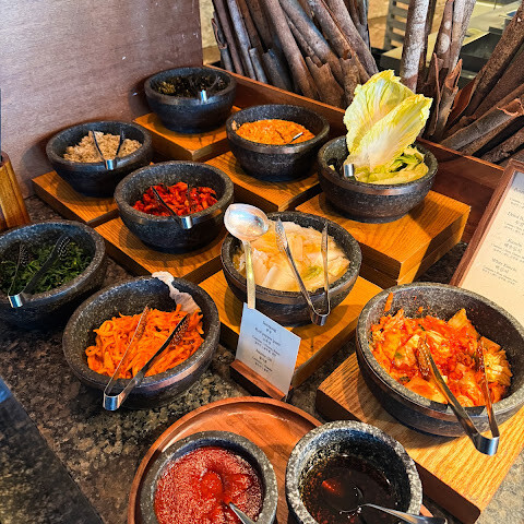 조식은 언제나처럼 훌륭했지만, 둘째 날에는 레스토랑이 너무 붐볐습니다. 저희는 31층의 추가 공간에 앉았는데, 음식은 32층에서 조리되어 보온 접시에 담아 내려오는 것 같았습니다. 괜찮긴 했지만, 작년 방문 때보다 품질이 약간 떨어진 느낌이었고, 바게트는 굽는 방식과는 상관없이 실망스러웠습니다. 그럼에도 불구하고 전반적인 식음료 경험은 서울 지점보다 나았습니다.