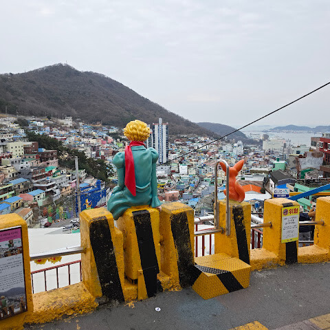 감천문화마을은 부산의 인기 있는 산골 마을 관광 명소로, 다채로운 색상의 집들과 예술 작품, 그리고 독창적인 골목길로 유명합니다. 가장 유명한 사진 명소 중 하나는 어린 왕자 동상으로, 관광객들로 항상 긴 줄이 늘어서 있습니다. 특히 혼잡한 시간에는 인파를 감수해야 하지만, 이곳에서 찍은 사진은 독특하고 특별한 추억을 선사합니다.