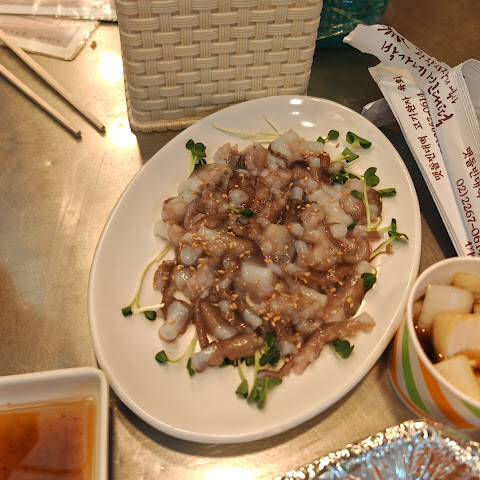 유케와 문어를 먹었지만 맛있었습니다.