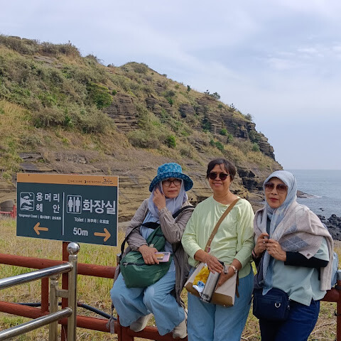 용머리해안은 제주도에서 가장 독특한 명소 중 하나이지만, 방문하려면 미리 계획을 세워야 합니다! 해안 바로 위에 조성된 산책로 때문에 하루에 몇 시간만 개방됩니다. 만조이거나 바람이 많이 불고 파도가 거칠 때는 안전상의 이유로 완전히 폐쇄됩니다. 다행히 저희는 오늘 오후 2시부터 5시까지 개방되는 시간에 방문할 수 있었습니다!<br><br>자연의 예술 작품:<br>이곳의 풍경은 정말 놀랍습니다. 수천 겹의 화산 사암으로 이루어진 절벽은 특정 각도에서 자세히 보면 마치 손으로 조각한 예술 작품처럼 보입니다. 어떤 부분은 바다를 바라보는 세월의 흔적이 묻어나는 얼굴 같고, 또 어떤 부분은 돌 속에 얼어붙은 거대한 파도 같습니다. 마치 자연 조각 박물관을 걷는 듯한 기분입니다.<br><br>산책 팁:<br>소요 시간: 편도 약 40분에서 1시간 정도 소요됩니다.<br>지형: 울퉁불퉁한 자연 암석 위를 걷게 됩니다. 튼튼한 신발이나 운동화를 착용하세요. 슬리퍼나 하이힐은 절대 안 됩니다!<br>경험: 바로 옆에서 파도가 부딪히는 모습과 바위 사이에 갇힌 아름다운 조수 웅덩이를 볼 수 있습니다.<br>출구: 마지막 구간은 좀 힘들 수 있으니 마음의 준비를 하세요! 출구는 가파른 계단을 올라가야 하지만, 뒤돌아보는 풍경은 그럴 만한 가치가 있습니다.<br><br>제주 여행의 하이라이트 중 하나입니다. 방문 전에 운영 시간(공식 웹사이트나 안내판에 게시되어 있음)을 꼭 확인하세요!