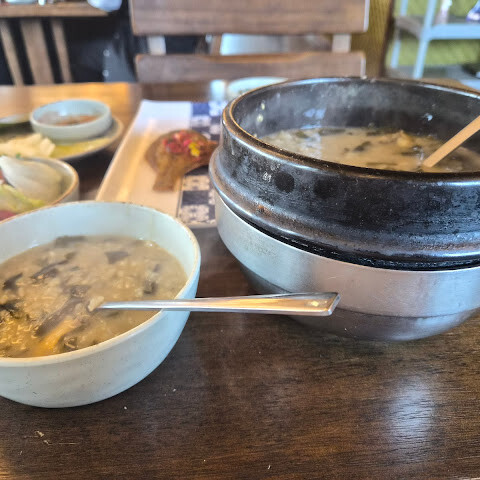 미역이 쫄깃하다는 평이 맞네요. 9시반에 깄는데 대기표21명. 15분정도 대기했어요. 쥬차장 엄청 넓진않지만 안내해주시니 좋아요. 순살가자미랑 조개미역국 주문했고 조개도 좋았어요. 둘이 먹고 나오면서 어르신 드리려구 전복미역국도 하나 포장했어요
