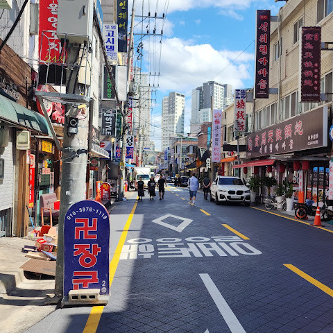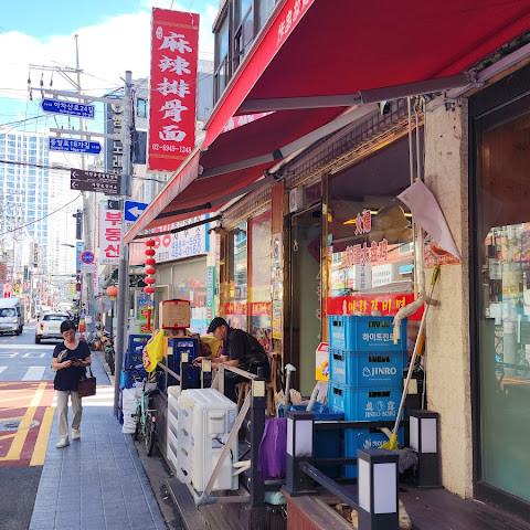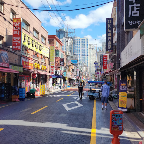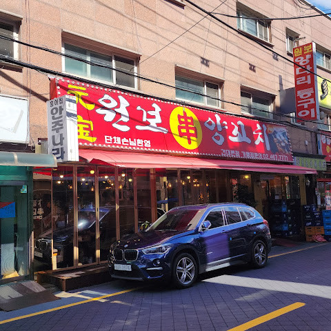 지하철 2호선 · 7호선 건대입구역 5번 출구로 나와 로데오거리를 지나 한강둔치 방향으로 50m 정도 걸어 내려가면 일명 "양꼬치 거리"로 유명한 중국음식문화거리를 만나게 된다. 중국 동포들이 운영하는 양꼬치 전문점들이 즐비한 이곳은 "신 차이나타운"이라고 부르기도 한다. 한국어보다 중국어 간판이 더 많은 곳으로, 양꼬치 전문점이나 퓨전 중국요리점 등이 있어 서울에서 다양한 음식문화를 느낄 수 있는 명소이다.