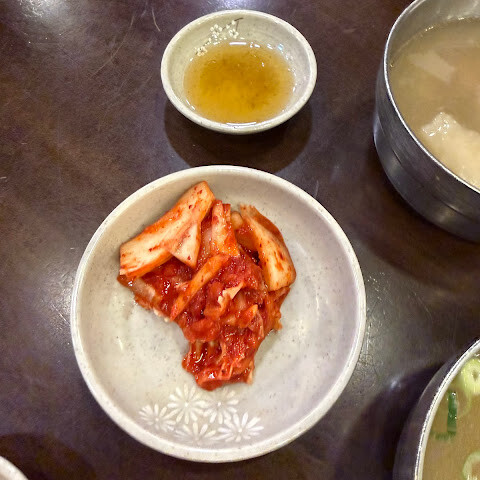 자리에 도착하면 김치와 수프가 이미 준비되어 있어 깜짝.