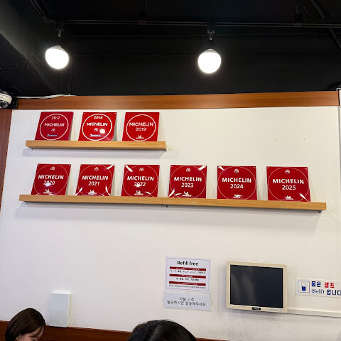 미슐랭 9년 연속 게재라고 하는 실적도 납득으로, 관광객용이라고 하는 것보다, 오랜 맛으로 계속 평가되고 있는 가게라고 느꼈습니다! 점내에서는 일본어도 잘 들려와 일본인의 손님도 많이 방문하고 있는 인상입니다! 점원도 조금 일본어를 할 수 있으므로, 한국어를 모르더라도 안심하고 주문할 수 있었습니다!
