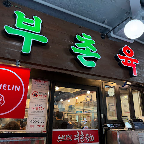 광장시장에 유명한 육회집. 육회집이 많은데 유독 유명하다. 미슐랭에 매년 선정되어서 그런 모양. 바쁜 매장 답게 다양한 국적의 손님들이 오고, 예약시스템을 이용해야한다. 점심 시간 좀 지난 이후에 방문했음에도, 15분 이상 대기하였다. 고기는 정말 신선하고 고소한 육회비빔밥이 일품이었다. 함께 나오는 소고기 무국도 깔끔하고 맛있는 편. 주차는 어렵다.