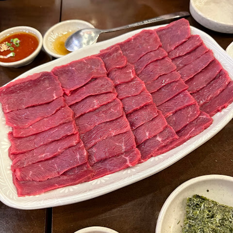 음식이 맛있고 신선해요. 무료로 제공되는 소고기 수프도 정말 좋았어요. 가격도 아주 합리적이에요. 생고기를 처음 먹어봤는데 다 맛있었어요.