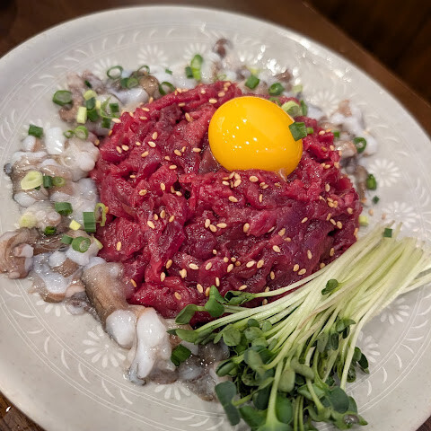 대부분 일본인들이었는데, 맛있다는 평을 많이 들었습니다. 만약 여기서 육회 탕탕이를 처음 먹었다면 저도 같은 생각을 했을지도 모르겠습니다.