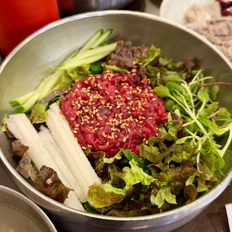 3년 전, 잘 알려지지 않은 시장 안 작은 식당에서 동네 친구와 함께 처음으로 육회 탕탕이를 먹었는데, 그 맛이 그리웠습니다.
