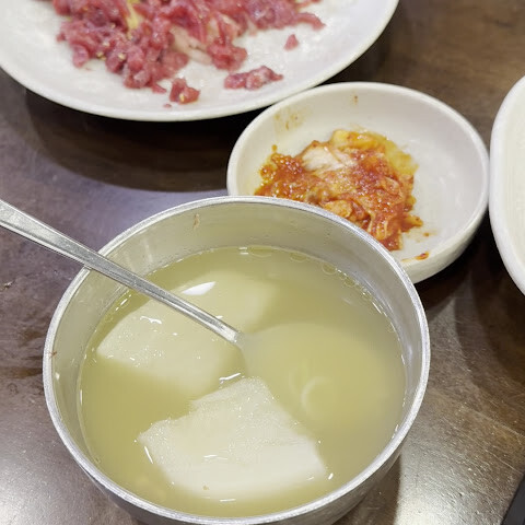이 육회집은 제가 가본 육회집 중 최고였어요! 게다가 푸짐한 소고기탕도 무료로 제공해 주더라고요! 탕 맛도 정말 좋고, 원하는 만큼 리필도 가능해요. 직원분들도 너무 친절했어요.
