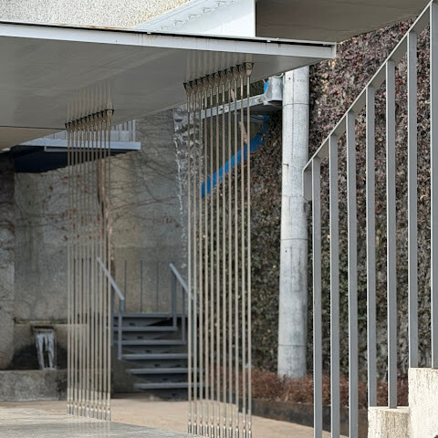 관광지 외곽에 위치해 있고, 여러 미술 전시가 열리고 있어요. 그중 하나는 현대가 큐레이팅한 "플라스틱"을 주제로 한 전시예요.