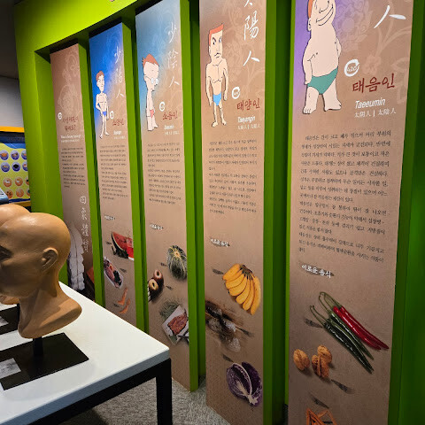 - 2층: 사상의학 소개와 설명 (신체, 체질, 음양오행, 건강 상태에 따른 질병 판별, 음식 궁합 등)
