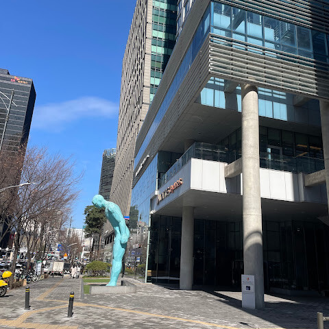 위치가 정말 좋아요. 을지로 3가 1번 출구에 있어요. 왼쪽에 세븐일레븐이 보이면 오른쪽으로 돌아서 유리문을 열고 들어가면 엘리베이터가 있어요. 엘리베이터를 타고 올라가면 오른쪽에 허리를 숙인 조형물이 보일 거예요. 짐이 많으시면 엘리베이터를 이용하시는 게 아주 편리해요. 에스컬레이터도 있어요.