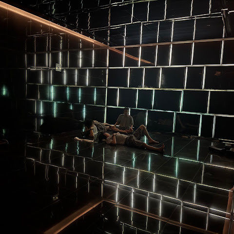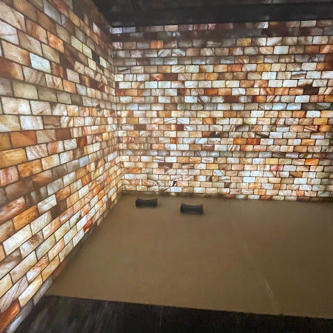 습식 사우나 구역의 다양한 풀을 탐험하며 한 시간 정도 보냈습니다. 풀과 샤워실 조명이 어두워서 마음에 들었어요 (제가 좀 쑥스럽긴 하지만요). 원하시면 샤워실에서 바디 스크럽/마사지도 받으실 수 있어요.