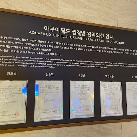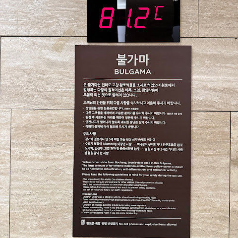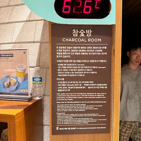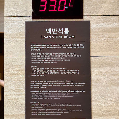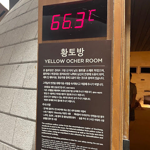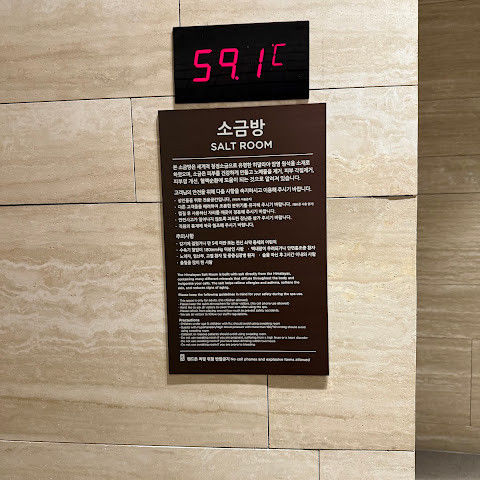 찜질방이 정말 끝내줘요. 25도의 시원한 미디어 아트실부터 33도의 메디컬 스톤룸, 59도의 소금룸, 63.9도의 황토룸, 81.2도의 열풍 건조 가마룸까지 온도가 정말 다양해요... 그리고 쉴 수 있는 방들이 정말 많아요. 그리고 달콤한 막걸리도 강력 추천합니다! 구운 계란도 먹을 수 있어요. 개인적으로는 그냥 평범한 맛이라고 생각하지만, 이 두 가지 콤보는 꼭 드셔보세요. 단품 메뉴가 콤보보다 더 저렴해요 (콤보에는 스티커 세트가 추가로 제공되거든요 🤣).