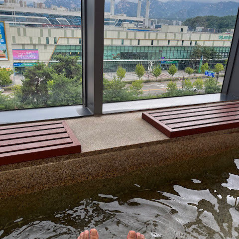 오랜만에 다시 방문했는데 전체적으로 아쉽습니다 일단 매트가 없어서 그냥 딱딱한 맨 바닥에 앉거나 누워있어야 한다는게 불편합니다 불가마 같은 온도가 높은 방에 들어갈때는 폰을 들고 들어가기 그래서 놓고 들어갔더니 시간이 얼마나 지났는지 알 수가 없어서 아쉬웠습니다(모례시계도 없음) 목욕하는 공간은 관리가 잘 되어서 좋았습니다만 비누 없어요! 때밀러 가는 분들은 미리 챙기길 추천합니다 자판기에 파는 비누4천원🫠 그밖에 바디워시나 샴푸, 치약, 드라이기, 헤어컨디셔너•로션등은 잘 갖춰져 있어서 클렌징폼, 칫솔, 샤워타올 정도만 챙겨가면 됩니다 푸드코트 넓고 뷰가 참 좋아요