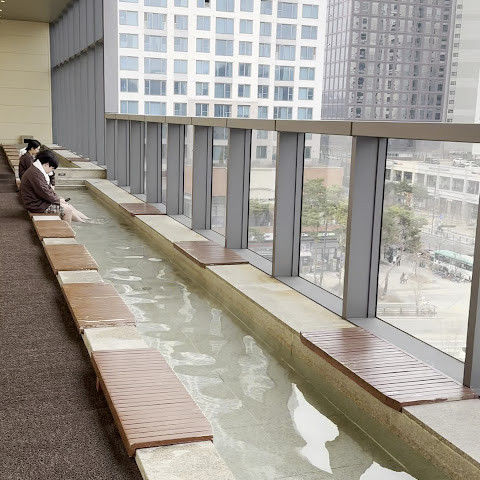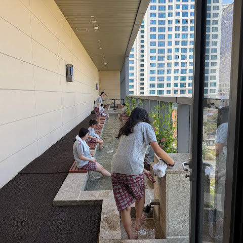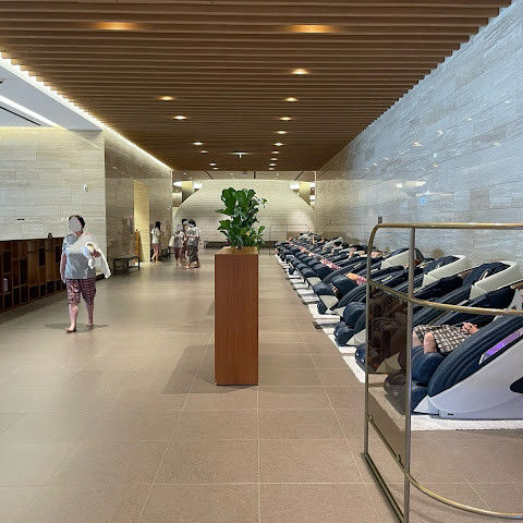 가격 대비 정말 만족스러웠습니다. 다만, 가족끼리 이용하기 좋은 곳이라 욕조에 아이들이 있어서 조용하지는 않았습니다. 릴렉세이션 룸처럼 성인 전용 공간도 있는데, 180도 리클라이닝 의자가 있어서 아주 조용하고 편안하게 쉴 수 있습니다. 다양한 온도의 사우나도 많고, 작은 푸드코트도 있습니다. 저희는 여기서 3시간 정도 보냈지만, 더 오래 머물 수도 있습니다.