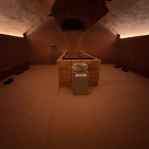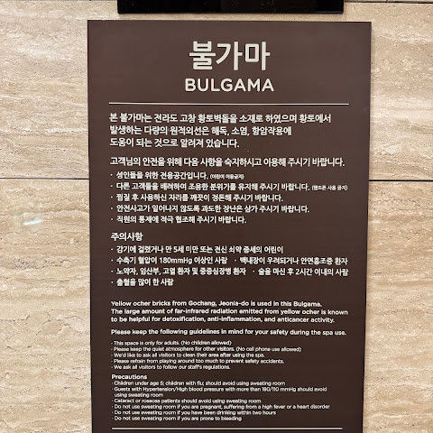 그런 다음, 짐질 옷(시설에서 제공)으로 갈아입기 전에 다시 몸을 씻을 수 있어요. 그다음에는 다양한 건식 사우나, 마사지 의자, 야외 풋 스파, 그리고 카페테리아가 있는 또 다른 넓은 공간으로 들어갑니다. 여기서도 2~3시간 정도 다양한 방을 탐험했어요 (너무 평화롭고 편안해서 거의 잠이 들 뻔했어요). 그런 다음 카페테리아에서 저녁을 먹었어요. 모든 요금은 처음에 나눠준 손목 밴드로 결제할 수 있어요. 마지막에 결제하면 돼요.