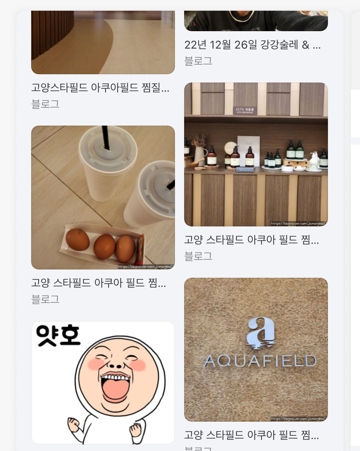 지하철: 3호선 삼송역 3번 출구. 스타필드까지 직진하세요. 4층으로 올라가 주차장을 지나 3홀로 가시면 아퀘필드가 있습니다. 아퀘필드 음식은 정말 최악입니다. 아퀘필드는 깨끗하고 규모도 매우 큽니다. 바디 스크럽은 3만 3천 원입니다.