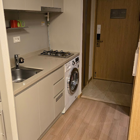 객실 시설이 정말 잘 갖춰져 있어요. 세탁기로 몇 번 빨래도 했어요. 냉장고도 마음에 들고, 작은 미니바보다 훨씬 좋았어요. 헬스장도 여행하기에 충분했어요.