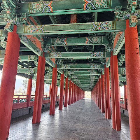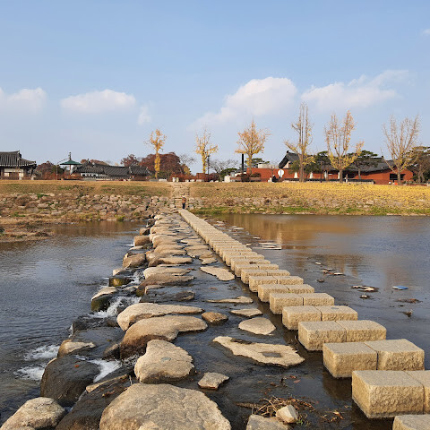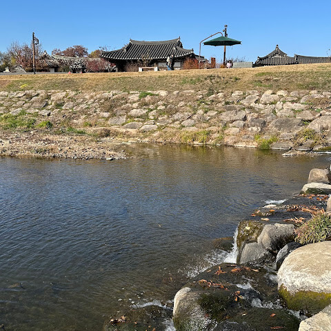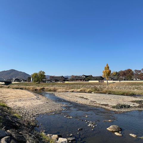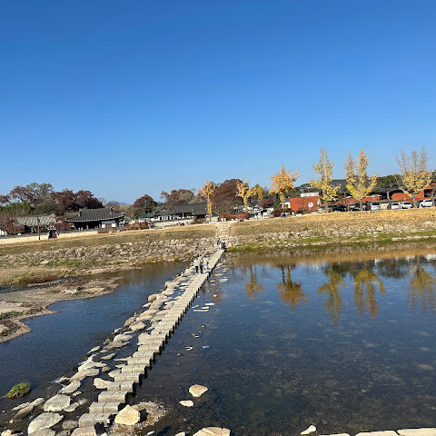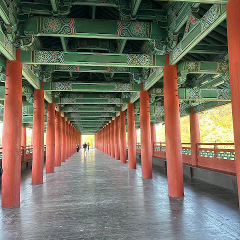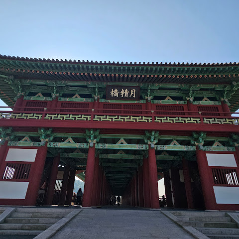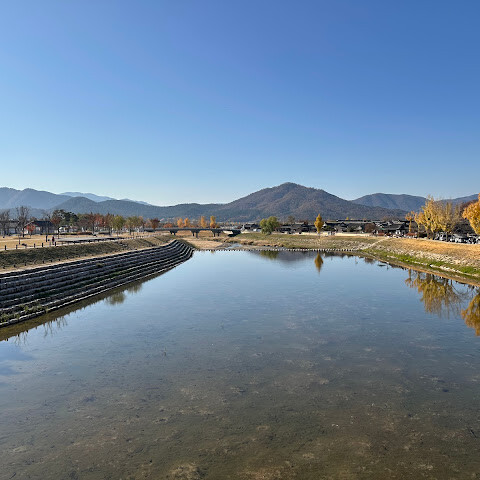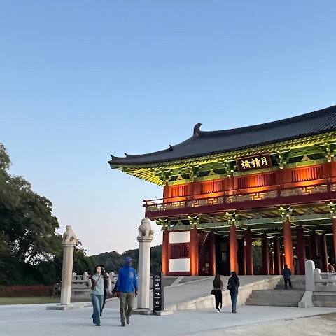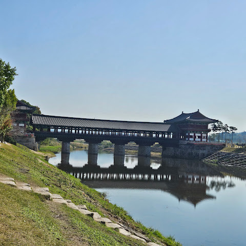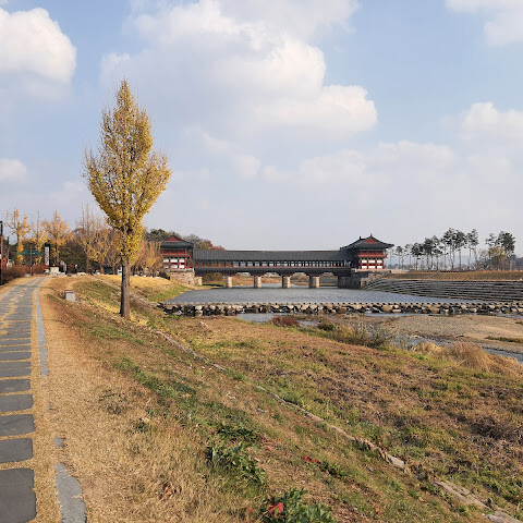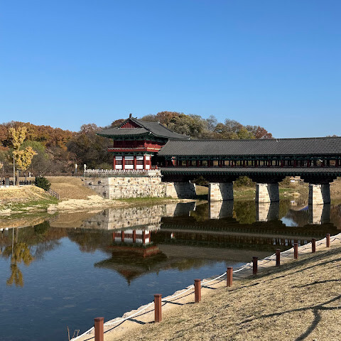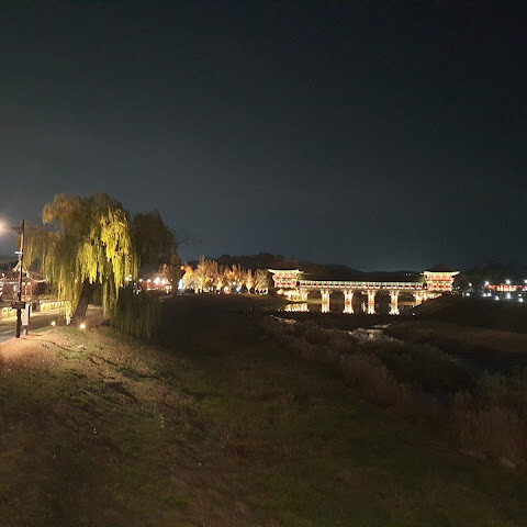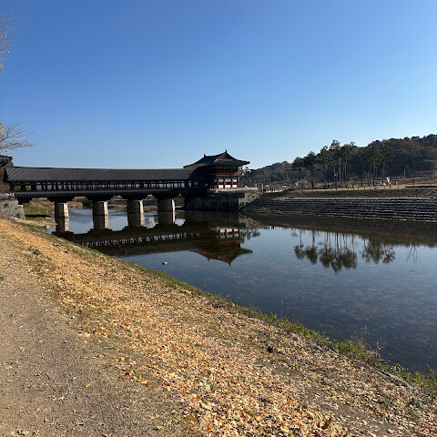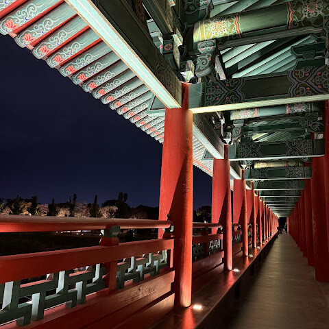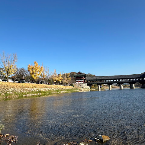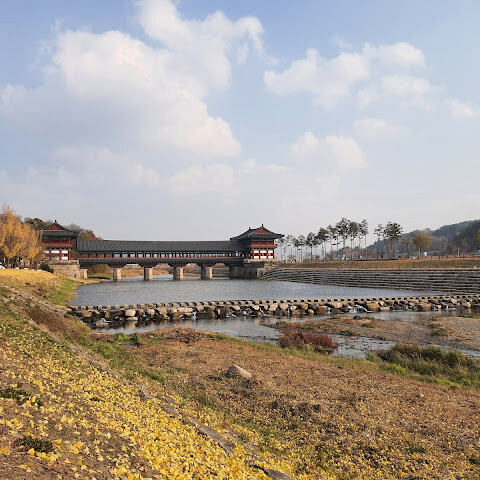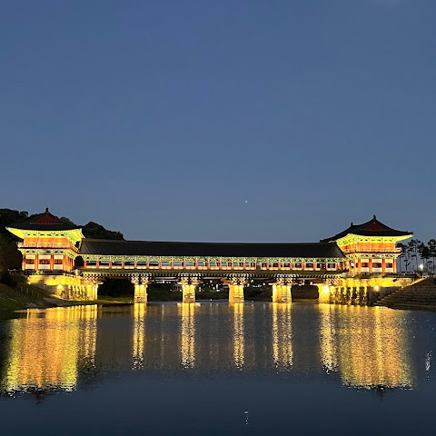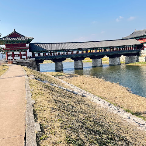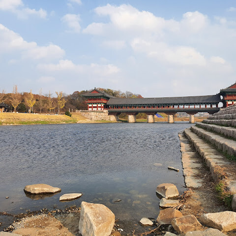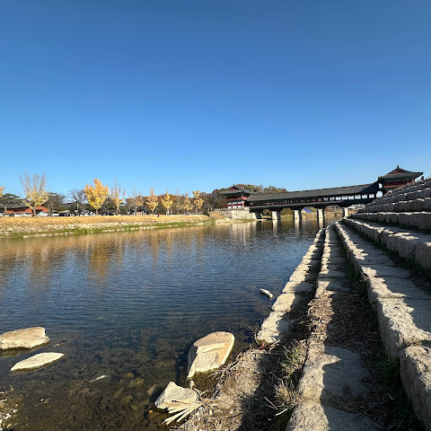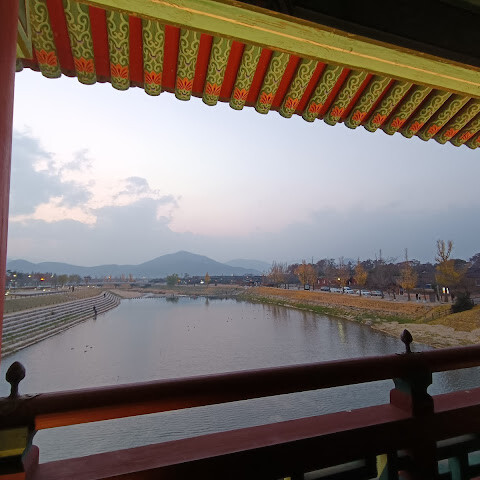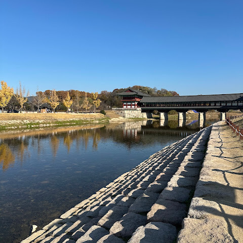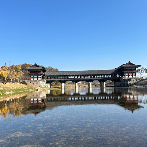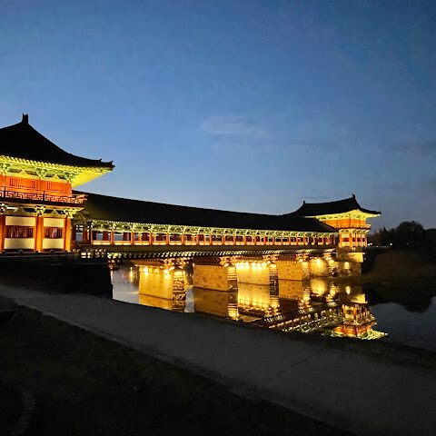 월정교는 아름답고 숨 막힐 듯 아름다운, 정말 고요한 풍경이에요. 다리 자체도 잘 보존되어 있고, 드라마에서 많이 봤던 그 공간을 걸을 수 있어서 정말 영광이었어요. 낮에 보는 것도 아름답지만, 진짜 마법 같은 순간은 해가 질 때 찾아옵니다!