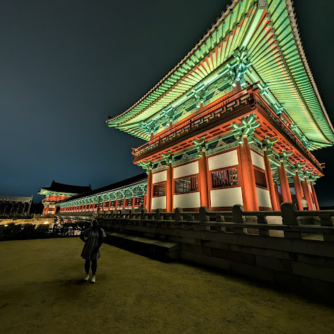 밤에는 조명이 훌륭했지만, 인물 사진을 찍기에는 너무 어두워서 오래 머물지 못했을 것 같습니다.