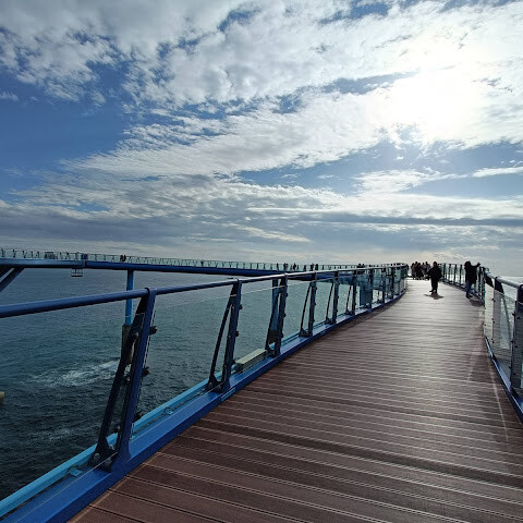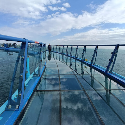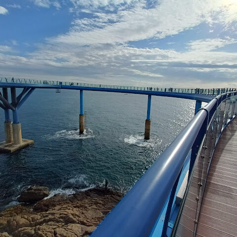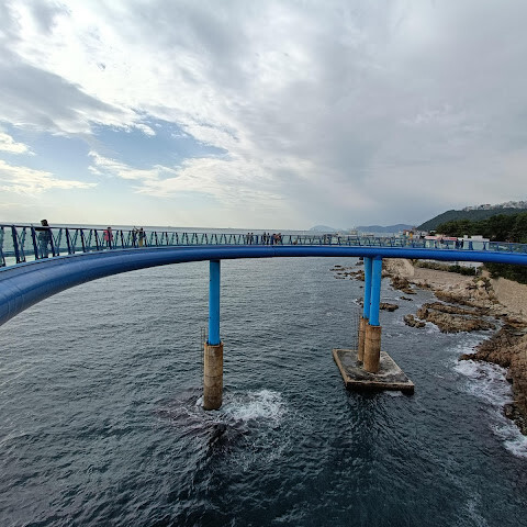 바다 위 산책로는 고소공포증이 있는 분들에게 아래를 내려다보기 좋은 곳입니다. 고소공포증을 조금이나마 덜어드리려면 철제 기둥 위를 걸어보는 걸 추천합니다. 발밑에서 춤추는 파도를 보는 게 정말 즐겁습니다.