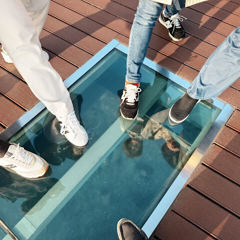 재밌는 곳이에요. 튼튼한 유리 다리라 전혀 무섭지 않아요. 다리 바닥이 단단한 나무로 되어 있어서 안이 안 보이는 구간도 있어요.