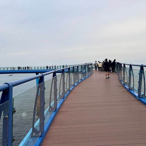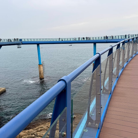 정말 멋진 스카이워크예요. 바닥이 유리로 된 구간에서는 바다를 감상할 수 있어요. 이 지역에 스카이워크가 여러 개 있는데, 여기가 제일 장관이에요. 블루 라인 지하철역 바로 옆에 있어서 찾아가기도 쉬워요. 꼭 한번 방문해 보세요.