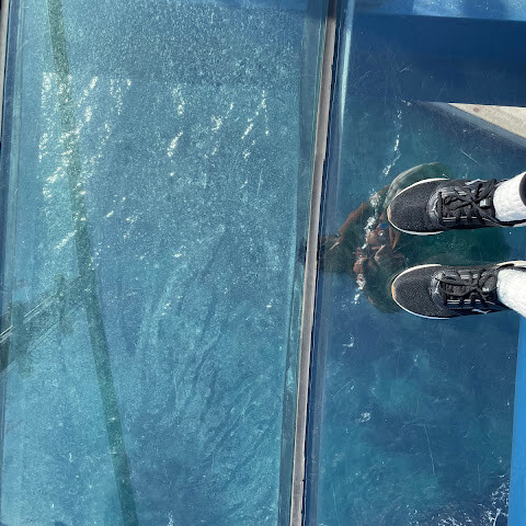 아름다운 경치였습니다. 거친 바다 위 유리 위를 걷는 것은 정말 놀라운 경험이었어요.