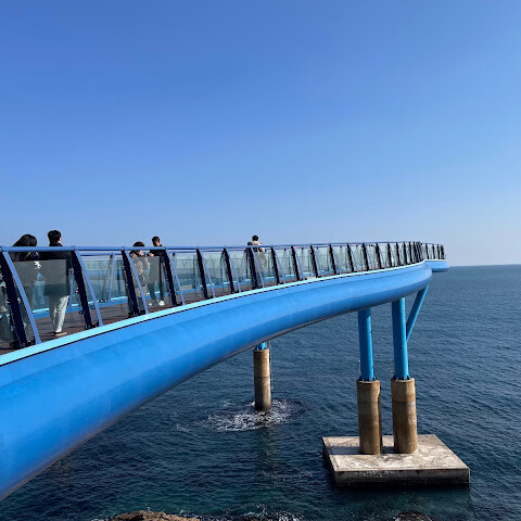 청사포 다리돌 전망대는 정말 멋진 건축물입니다. 해발 약 20미터 높이에 위치한 전망대는 바다 쪽으로 약 70미터 뻗어 있으며, 바닥이 유리로 되어 있어 마치 바다 위를 걷는 듯한 느낌을 받을 수 있습니다. 해안선부터 수평선 너머 푸른 바다까지 펼쳐지는 아름다운 풍경을 감상할 수 있습니다. 입장료는 무료이며, 부산 여행 일정에 꼭 포함시키기를 추천하는 곳입니다.