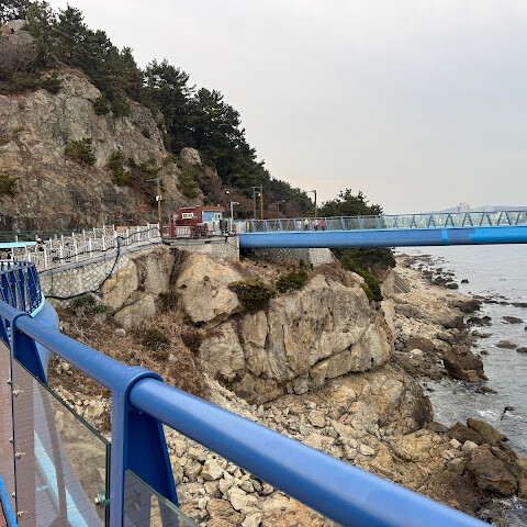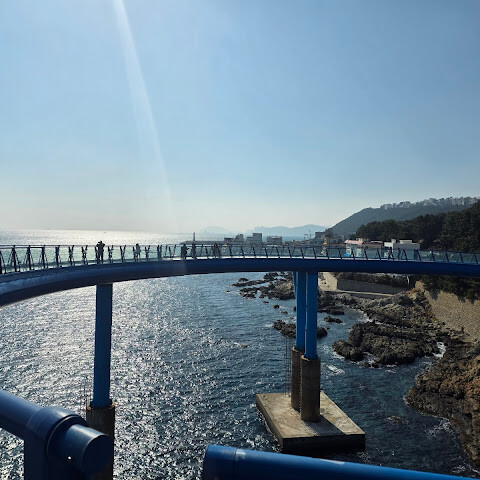 정말 멋져요! 자연의 아름다움과 한국의 뛰어난 교량 건설 기술에 감탄하게 될 거예요! 해안 열차를 타고 오세요. 청사포역이 아니라 구덕포역에서 내리시면 됩니다.