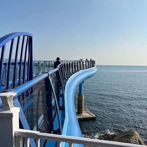해안 열차를 타고 청사포역 다음 정류장에서 내리면 스카이워크에 도착하여 웅장한 해안선을 감상할 수 있습니다.