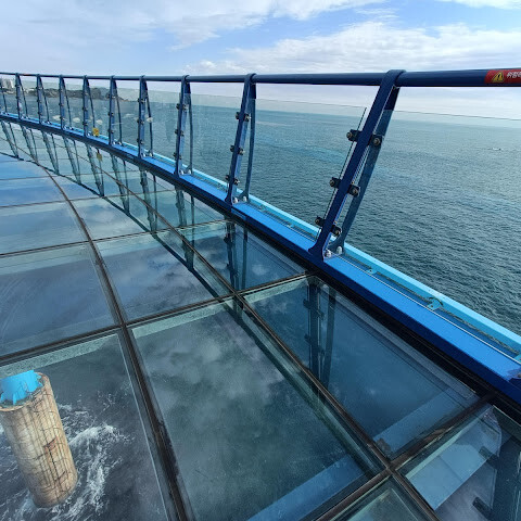 여기 정말 좋아요!! 캡슐 열차 타기 전에 꼭 산책해 보세요. 바로 아래 바다가 보이는데, 유리 위를 걸으며 사람들의 겁먹은 반응을 보는 재미가 쏠쏠해요 😍 (게다가 입장료도 무료예요!)